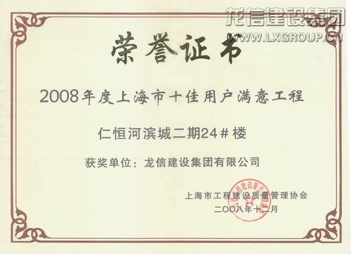 仁恒河濱城二期2008年度上海十佳用戶滿意工程