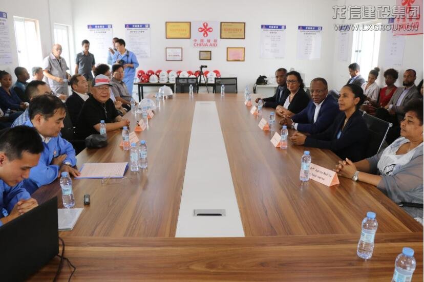 在聽取項目部工作情況匯報后,席爾瓦總理發表講話,他指出,一年半前他來參加項目開工儀式,這里還是不毛之地,如今工程結構基本完成,處處呈現大干快上熱火朝天的喜人景象,項目按照魯班獎的要求加強管理,相信中國工人一定會為佛得角建設一座高水平高標準的建筑,推動佛得角教育事業的發展。為此,他向中國政府和人民,向辛勤勞作的中國工人表示最衷心的感謝!