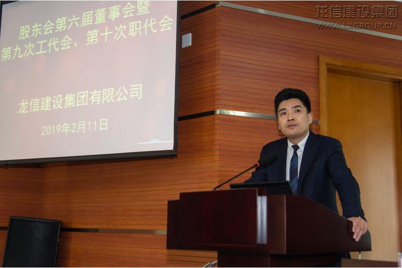 2019年2月11日,龍信建設集團有限公司股東會暨第九次工代會、第十次職代會在龍信大廈20樓會議室召開。龍信集團股東、第五屆董事、監事、各板塊負責人、分子公司負責人、工會(職工)代表、集團條線及部門負責人、受表彰人員等共計172人出席會議。海門市住建局工會主席楊美如蒞臨會議指導并發表講話。