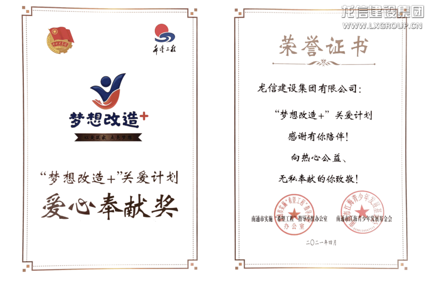 活動中,共青團南通市委對“夢想小屋”建設前期推進過程中涌現(xiàn)出的愛心單位和企業(yè)進行了表彰。龍信集團榮獲南通市“夢想改造+”關愛計劃愛心奉獻獎,集團團委書記王敏敏出席活動并領獎。