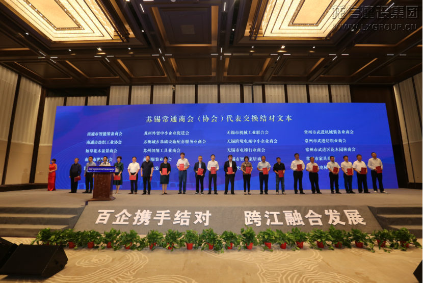 百企結對·攜手并進,會議現場,10余家商協會和100多家企業分別簽署結對文本,組成跨江合作對子,表示將加強在技術、人才、項目、市場以及經營管理等方面的交流與合作,通過學習交流、溝通互訪、信息共享、項目合作、產業協作等方式,不斷深化蘇錫常通產業合作和融合發展,努力拓展合作領域,以實際行動推動蘇錫常通四地跨江融合,促進社會經濟聯動發展。