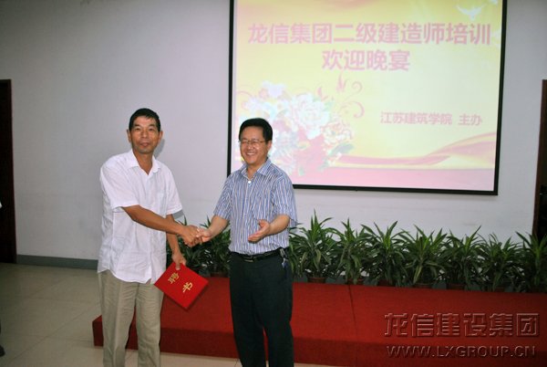 八月三十日龍信建設集團二級建造師齊集江蘇建院參加省廳組織的繼續教育培訓考試,江蘇建院組織參加培訓的人員參觀了建院建筑館和龍信學院及學院校區,晚上舉行招待宴會,建院所有領導都參加了宴請,并對校企合作、人才培養、企業文化、項目需求等方面進行探討,建院黨委書記袁洪志、院長吳光林、龍信集團張志軒分別講話并作出要求,加深校企合作向深層次領域發展,同時江蘇建院對劉永平等十位同志頒發江蘇建院客座講師的聘書。